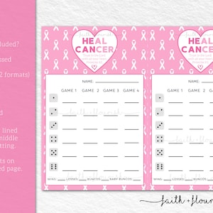 Printable Breast Cancer Bunco Score Card Sheet Breast Cancer Awareness