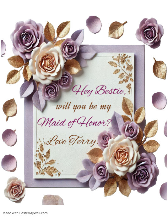 Purple Modern Maid of Honor Proposal Card Template Flyer 2024