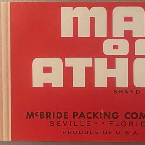Antique Vintage 1930s Maid of Athens Crate Label Seville FL Greek