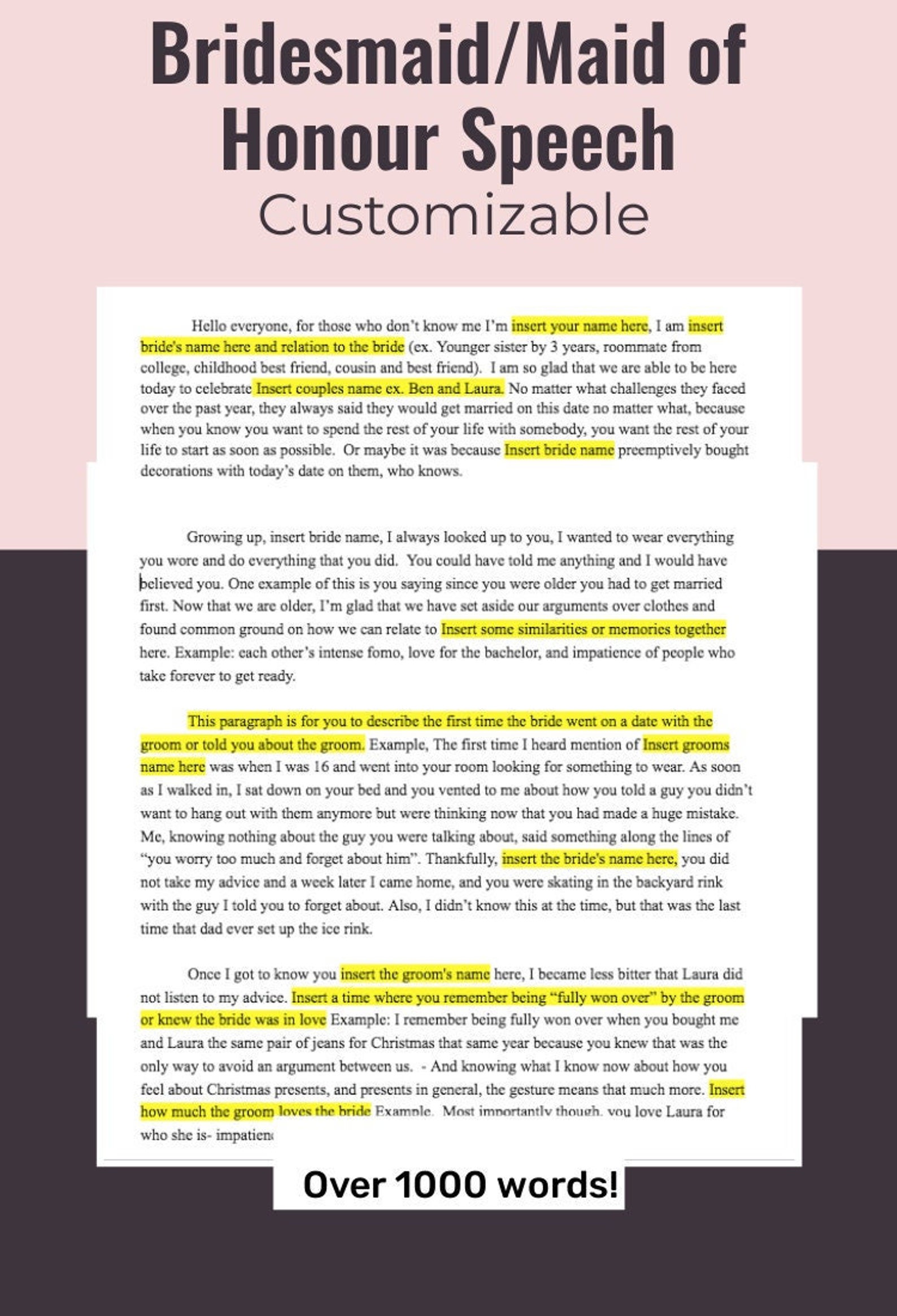 Maid of Honor Speech Template Wedding Toast MOH Bridesmaid Speech