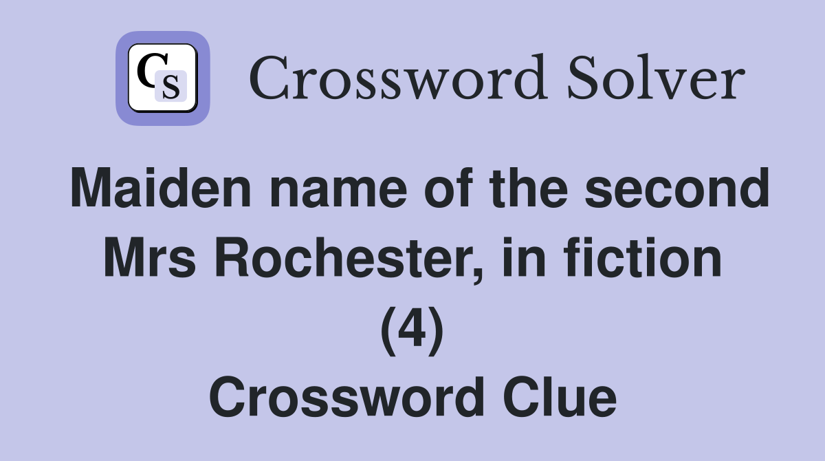 Maiden name of the second Mrs Rochester in fiction (4) Crossword
