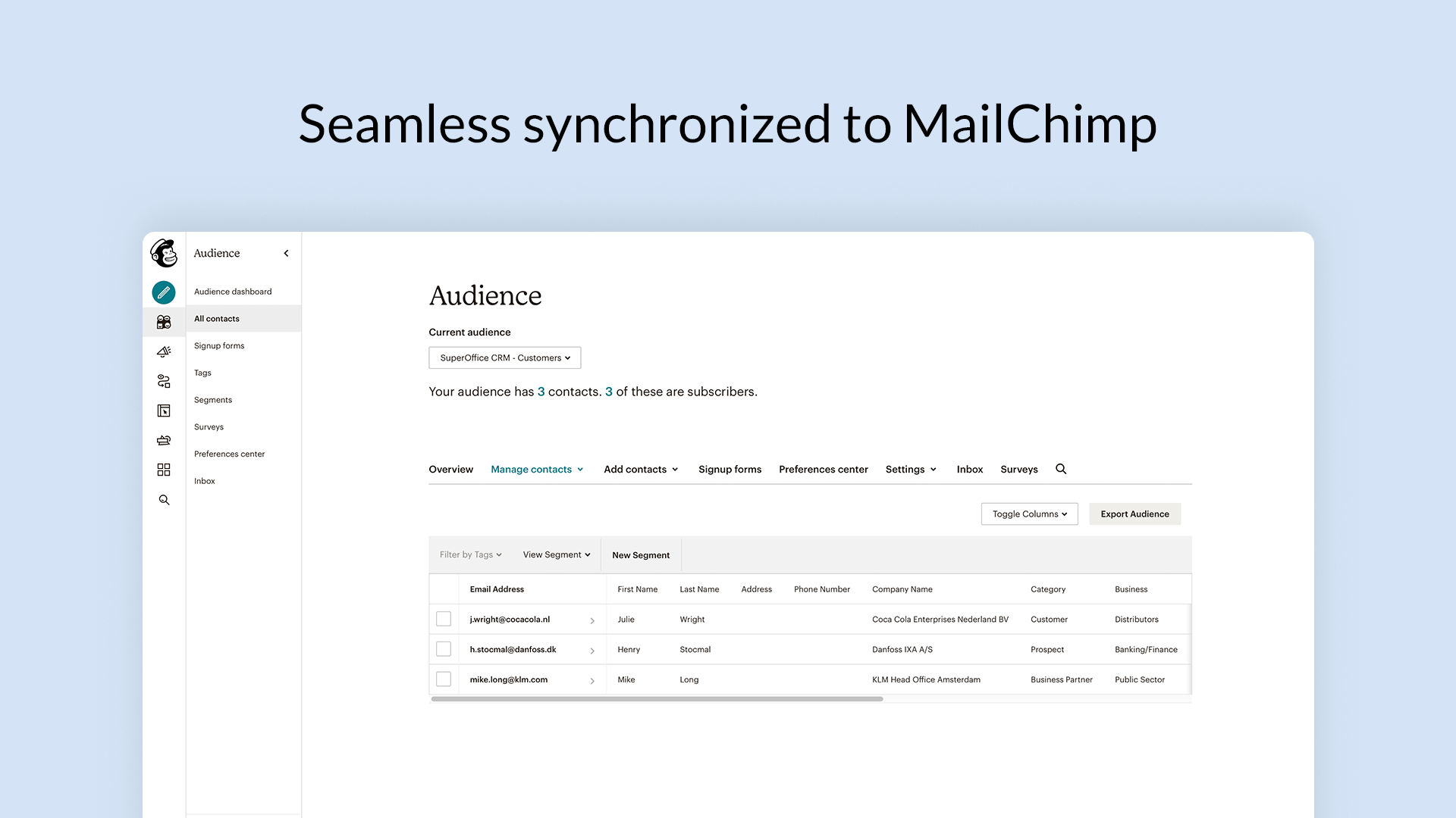 SuperOffice for Mailchimp Apps for SuperOffice CRM Online