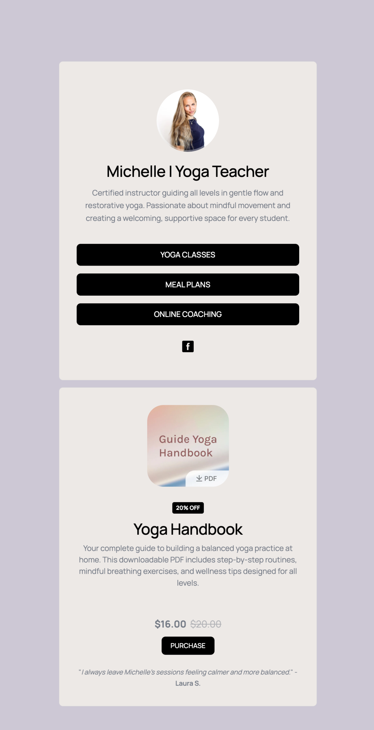 Lifestyle link in bio Landing Page Template MailerLite