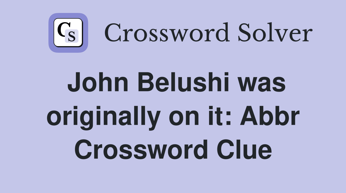 John Belushi was originally on it: Abbr Crossword Clue Answers