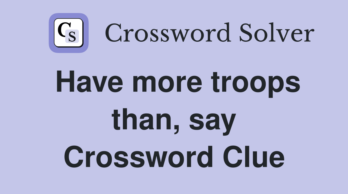 Have more troops than say Crossword Clue Answers Crossword Solver
