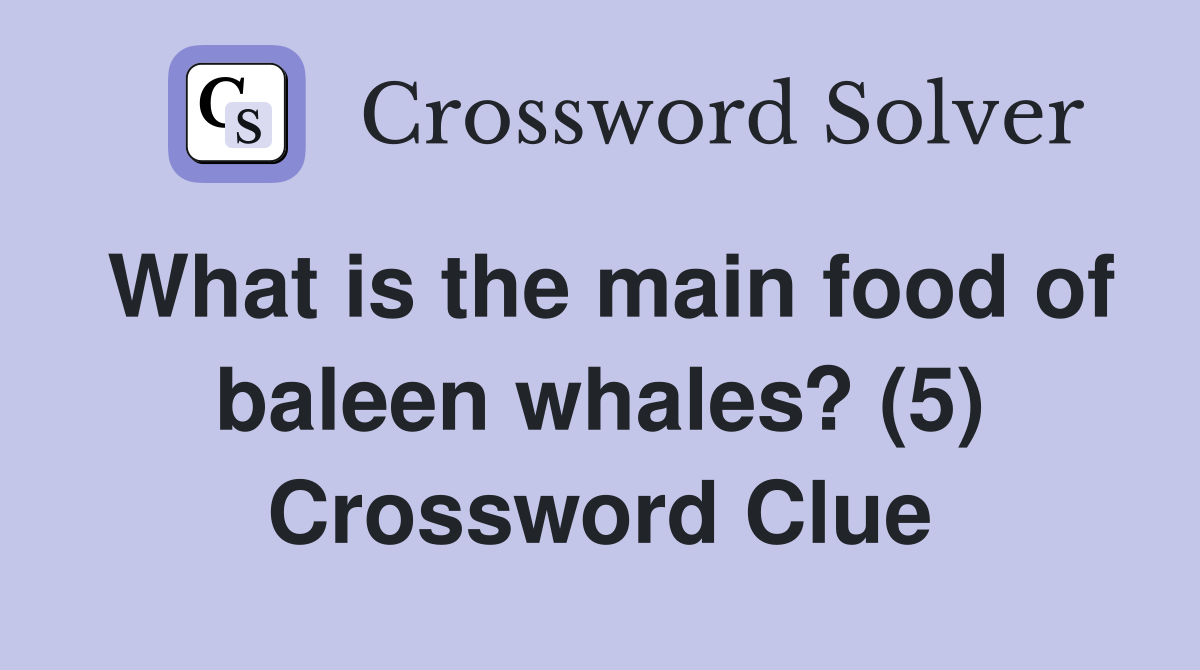 What is the main food of baleen whales? (5) Crossword Clue Answers