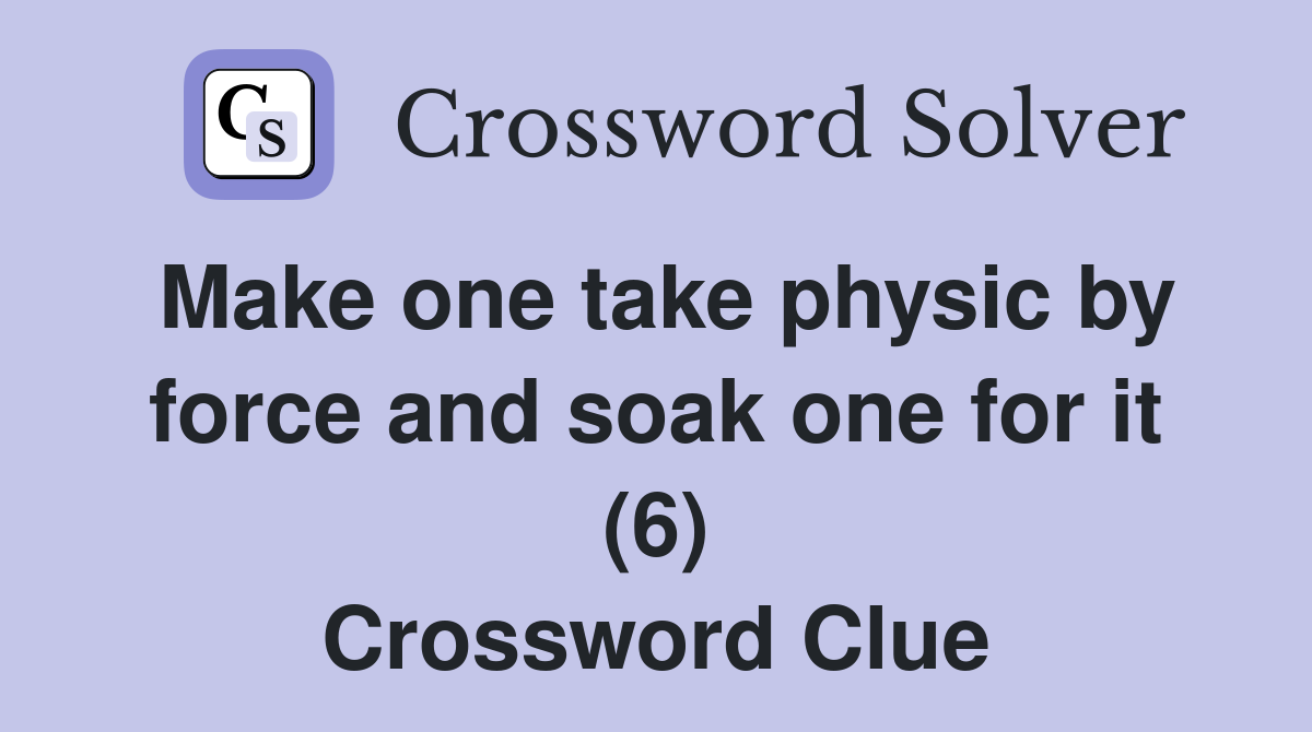 Make one take physic by force and soak one for it (6) Crossword Clue