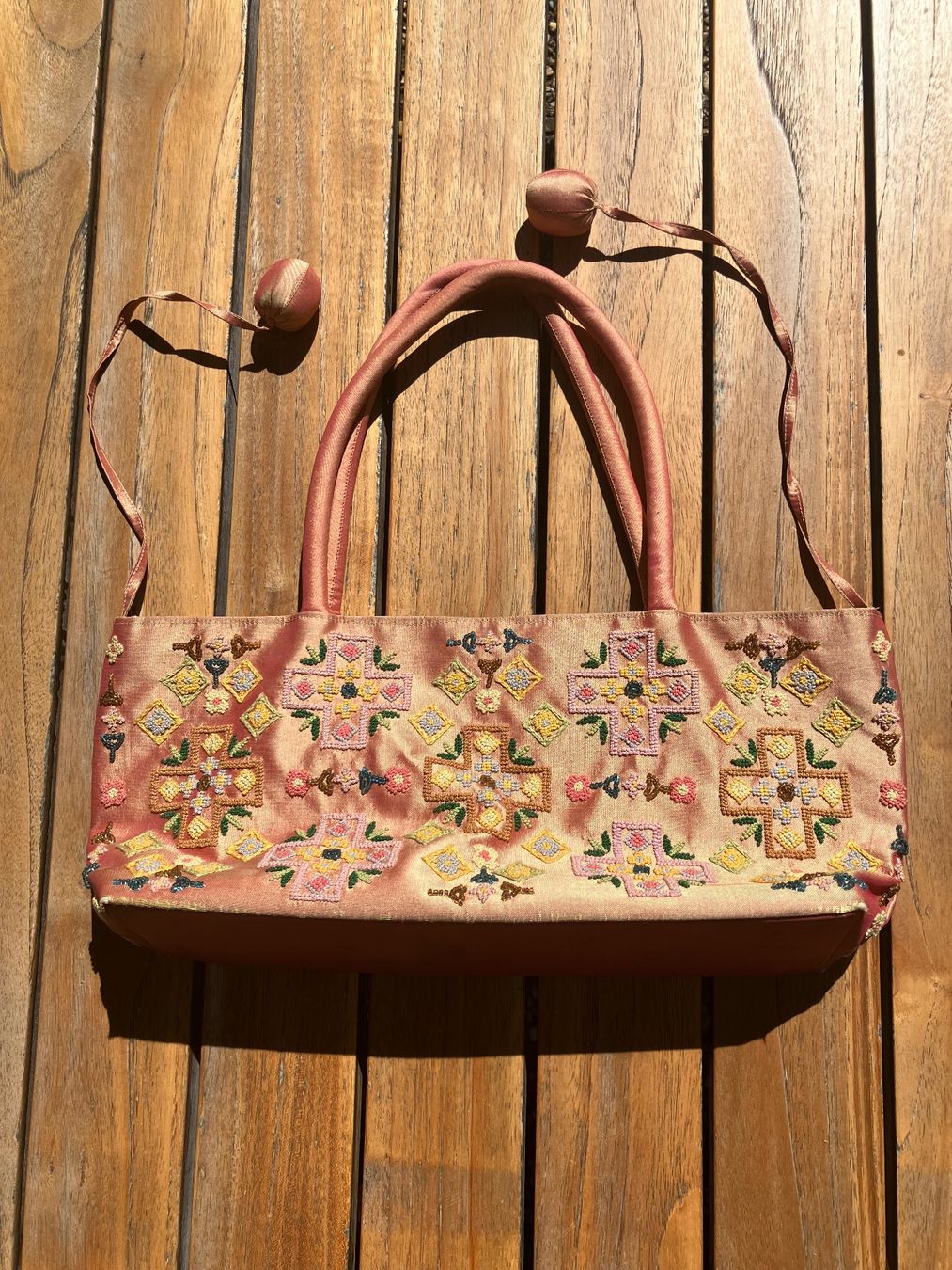 Sac à main vintage brodé rose doré (D #39 occasion) à Chavannes des Bois