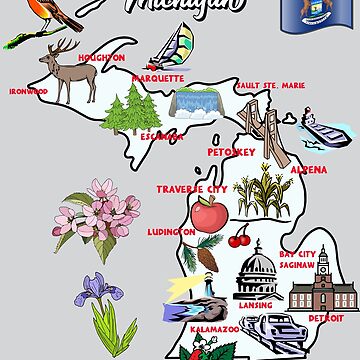 quot Hand Drawn Illustration of Michigan state Map with Tourist
