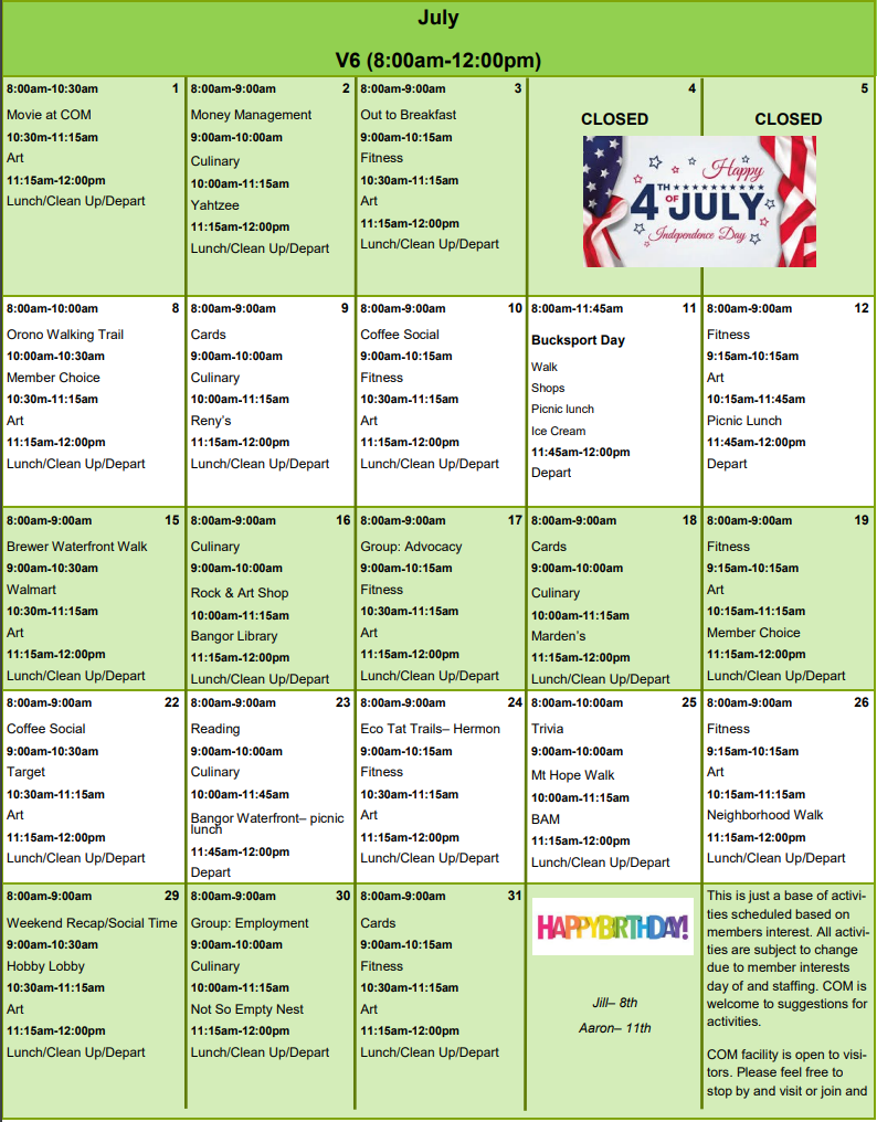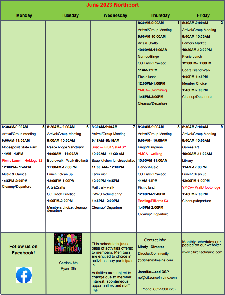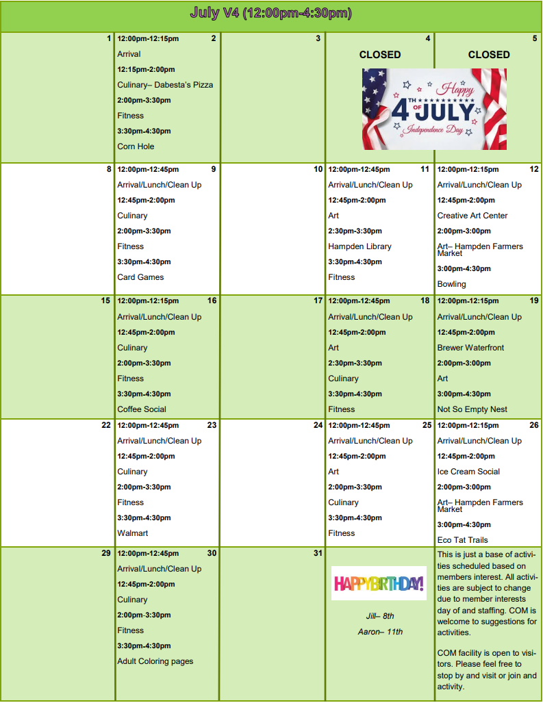 Calendar of Events Citizens of Maine Hampden Maine