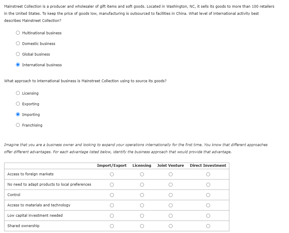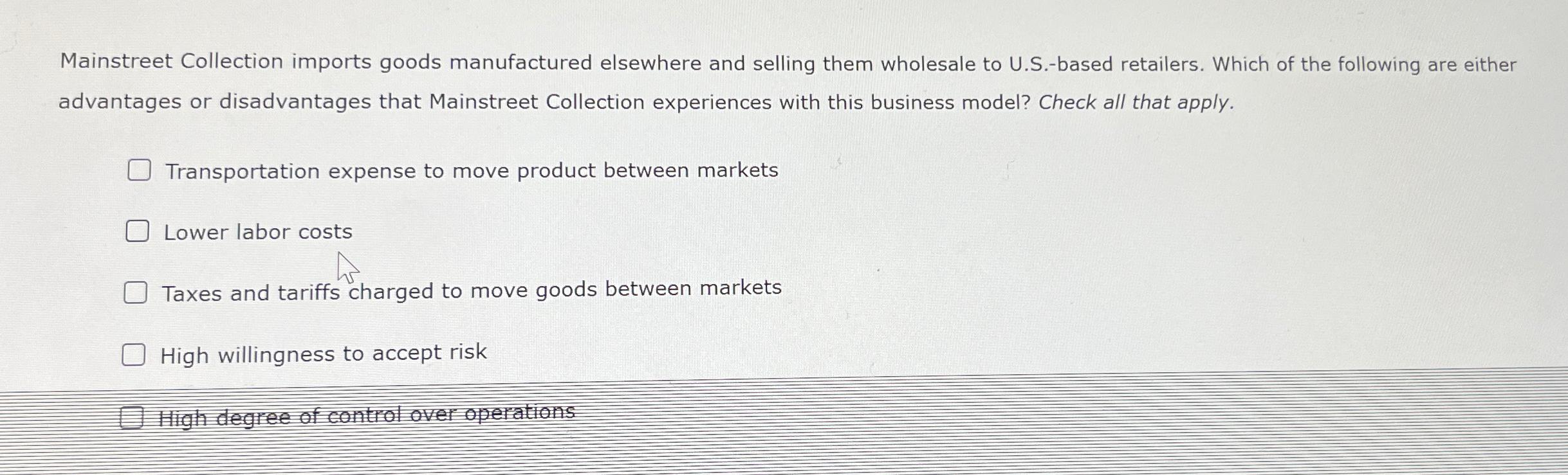 Solved Mainstreet Collection imports goods manufactured Chegg com