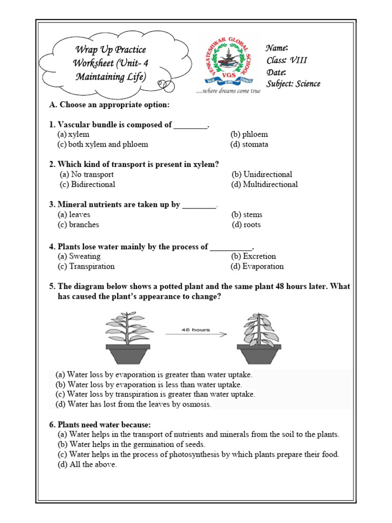 Class 8 Unit 4 Maintaining Life Wrap Up Worksheet PDF Botany Plants