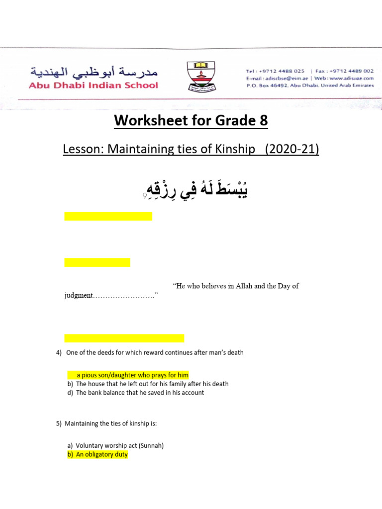 Worksheet GR 8 Maintaining Ties of kinship NOTEBOOK PDF Abrahamic