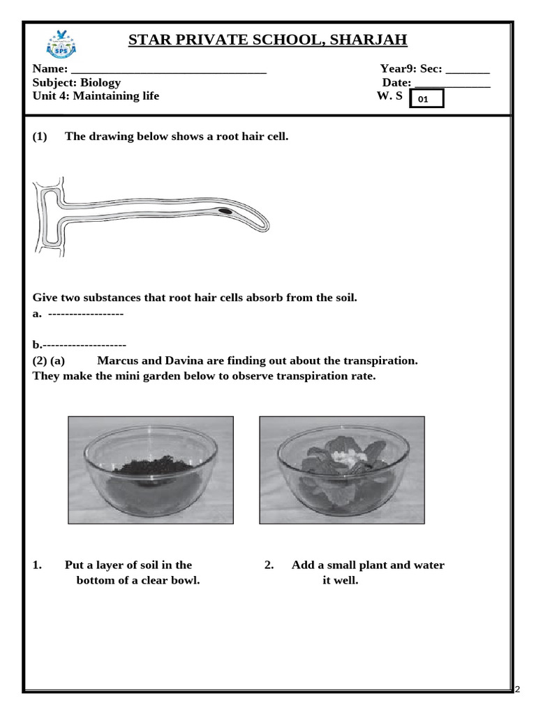 YEAR 9 Worksheet 01 Unit 4 Maintaining Life e PDF