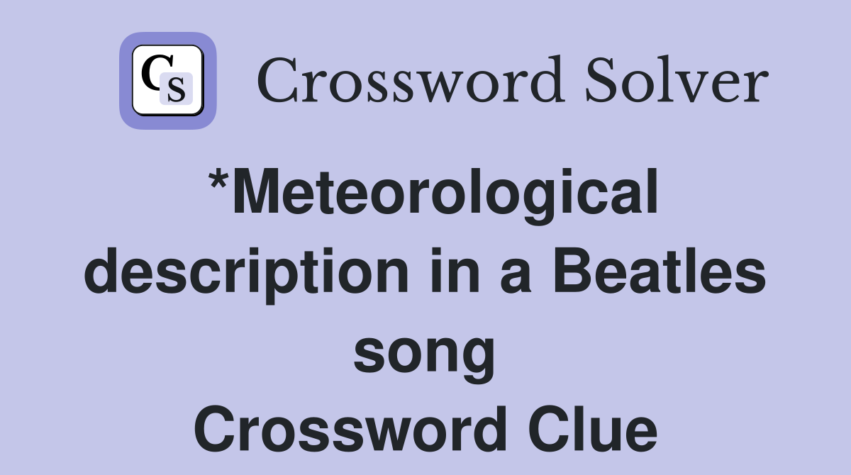 *Meteorological description in a Beatles song Crossword Clue Answers