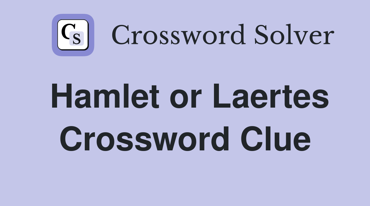 Hamlet or Laertes Crossword Clue Answers Crossword Solver