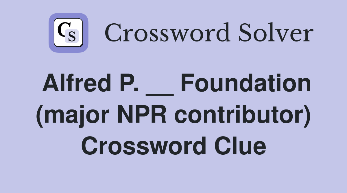 Alfred P Foundation (major NPR contributor) Crossword Clue