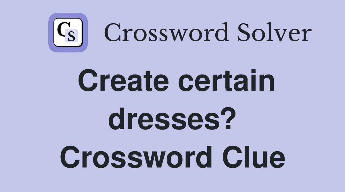 Create certain dresses? Crossword Clue Answers Crossword Solver