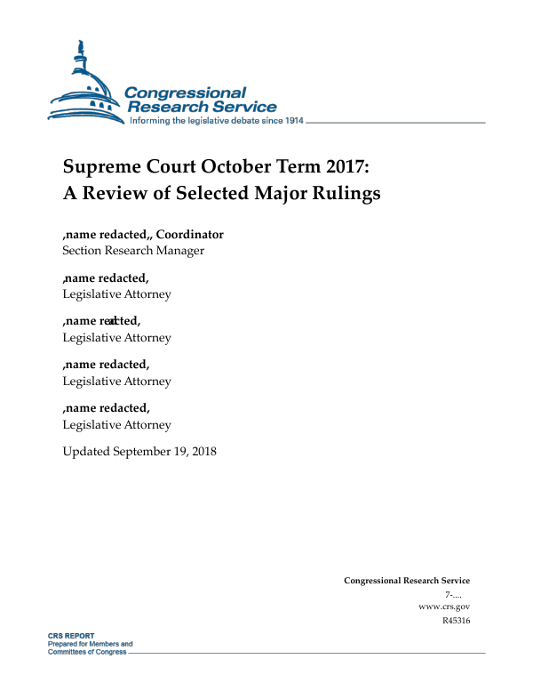 Supreme Court October Term 2017: A Review of Selected Major Rulings