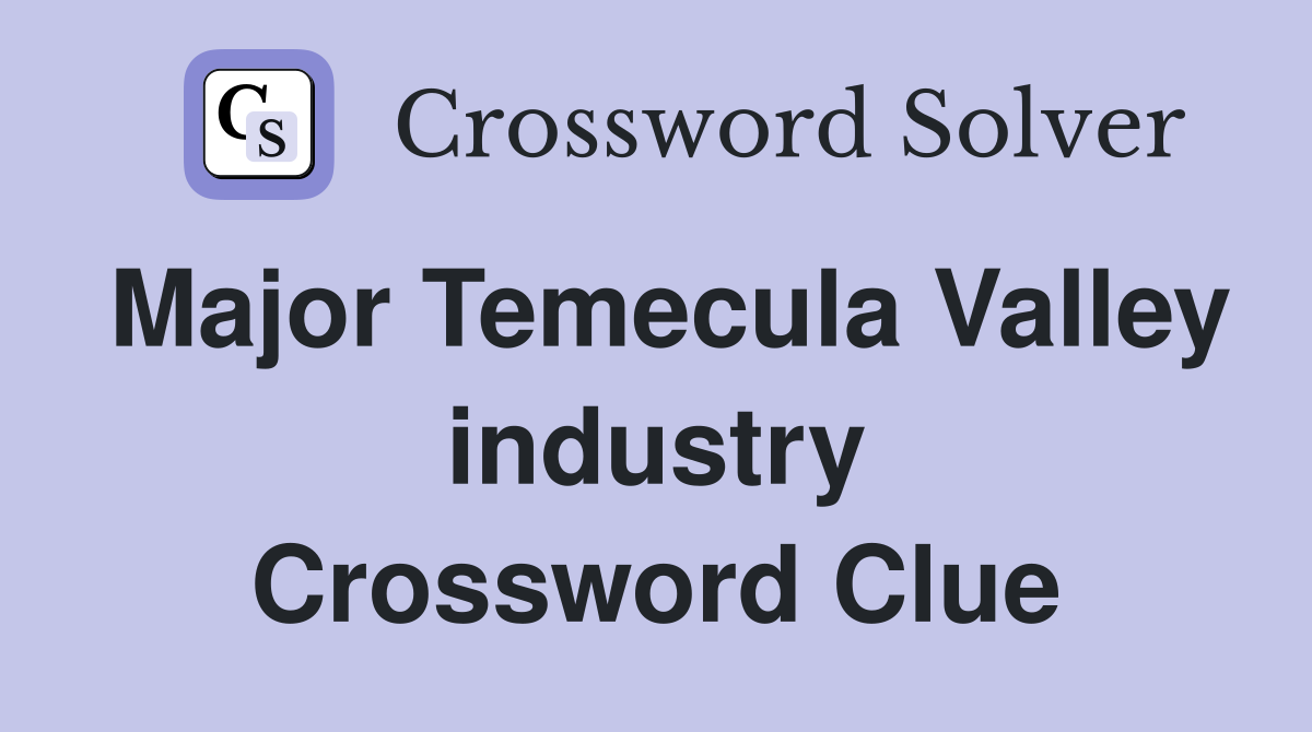 Major Temecula Valley industry Crossword Clue Answers Crossword Solver