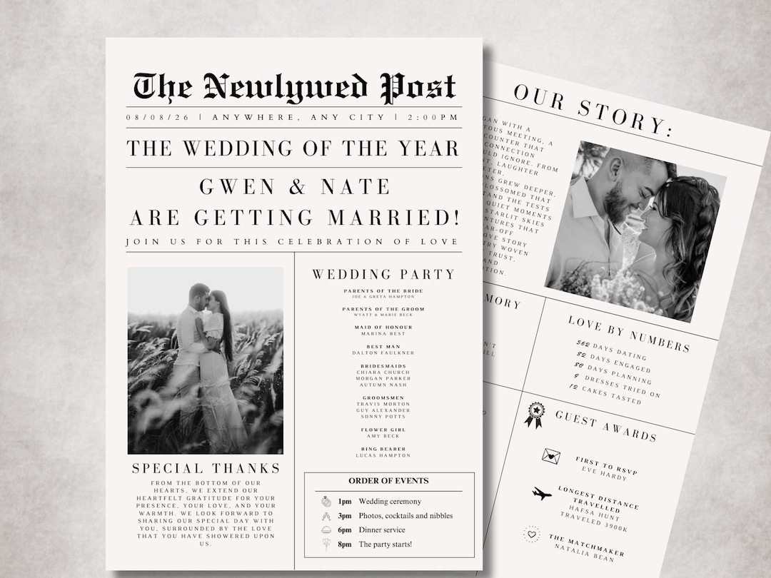 Newspaper Wedding Program Template Wedding Itinerary Wedding