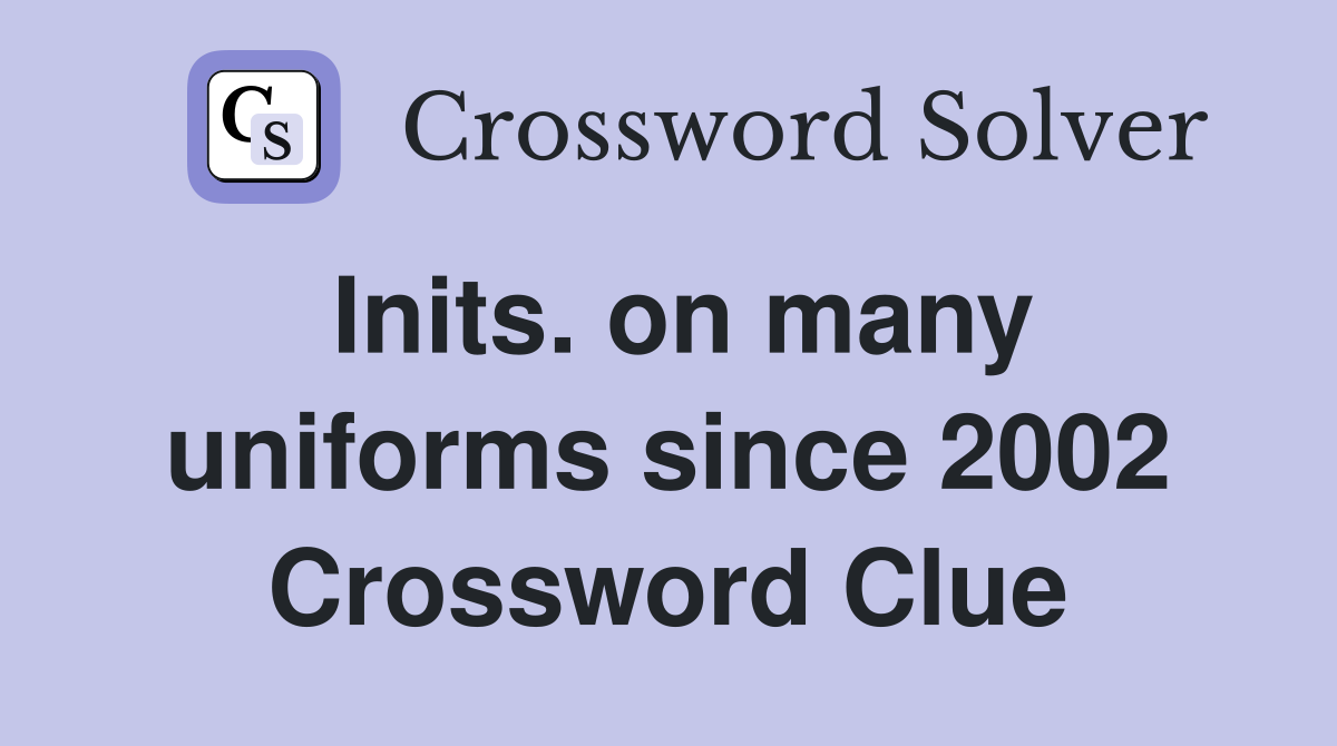 Inits on many uniforms since 2002 Crossword Clue Answers Crossword