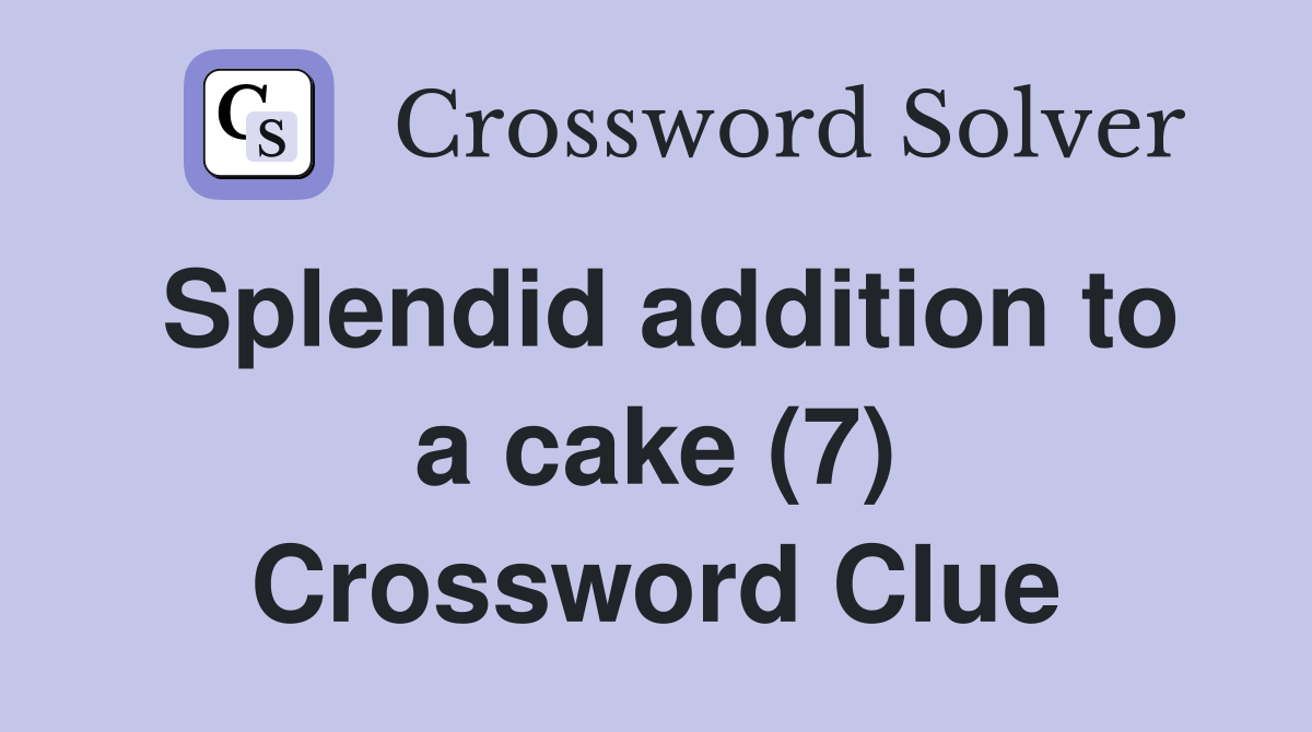 Splendid addition to a cake (7) Crossword Clue Answers Crossword Solver
