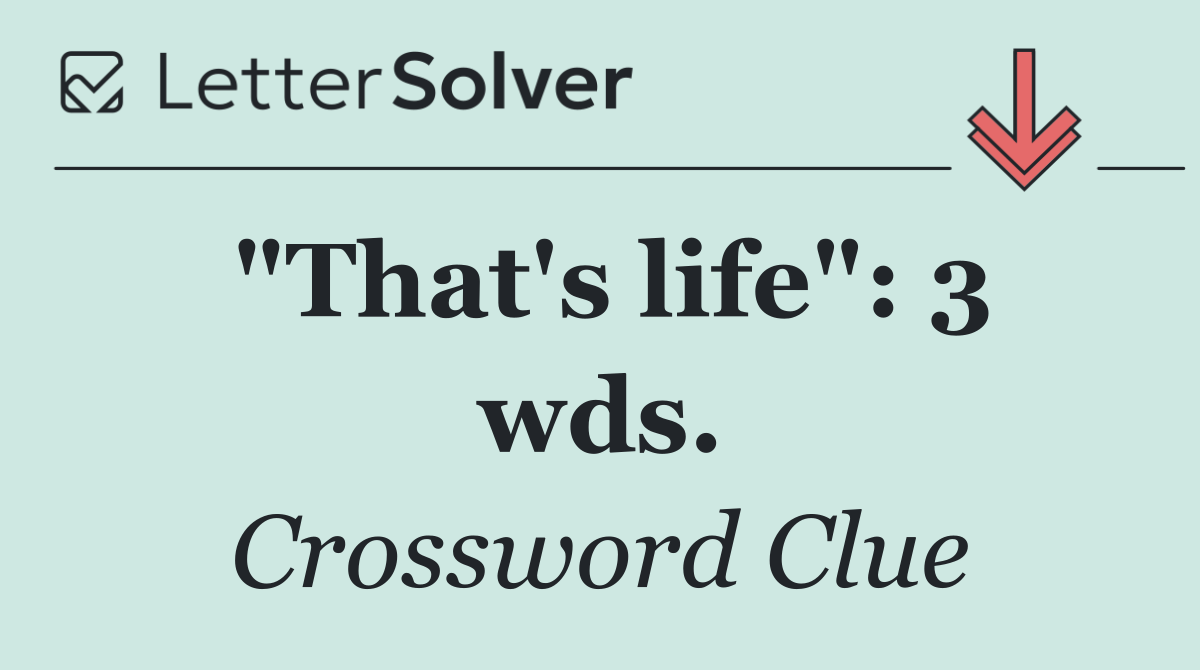 quot That #39 s life quot : 3 wds Crossword Clue Answers