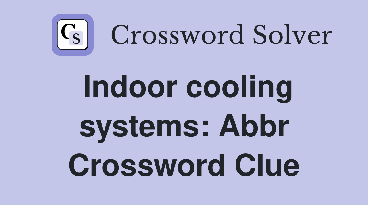 Indoor cooling systems: Abbr Crossword Clue Answers Crossword Solver