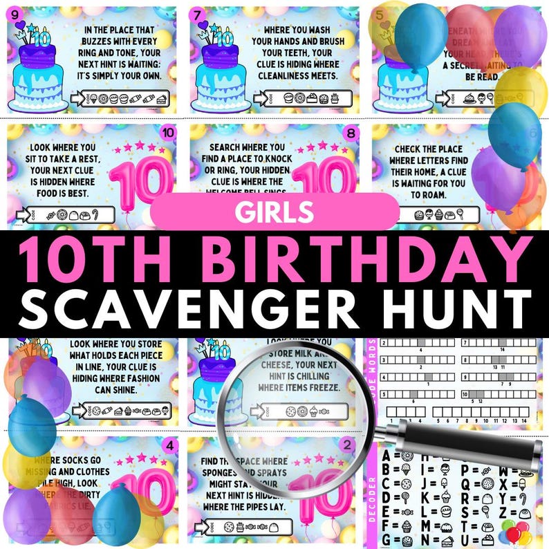 Girls 10th Birthday Scavenger Hunt for Kids Indoor Printable Game