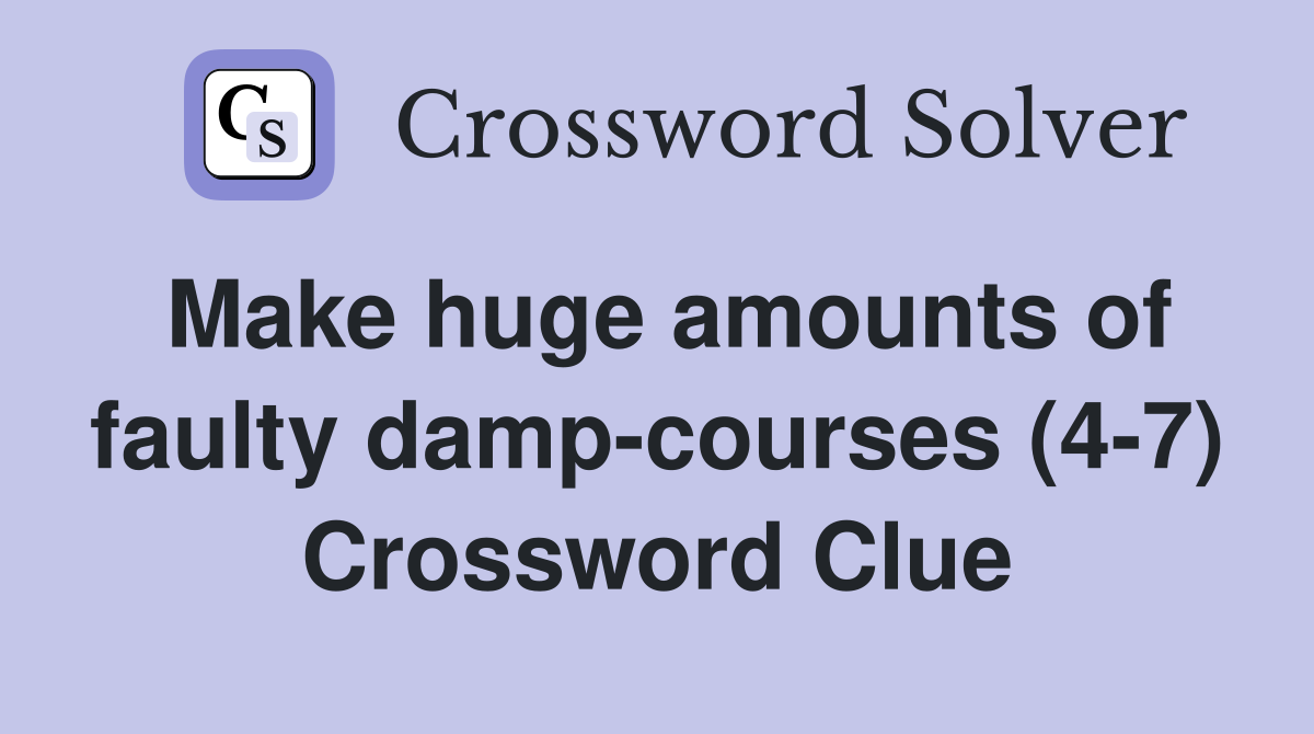 Make huge amounts of faulty damp courses (4 7) Crossword Clue Answers