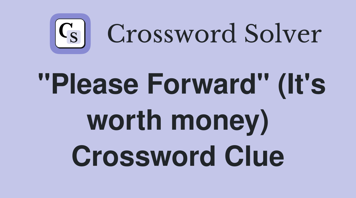 quot Please Forward quot (It #39 s worth money) Crossword Clue Answers