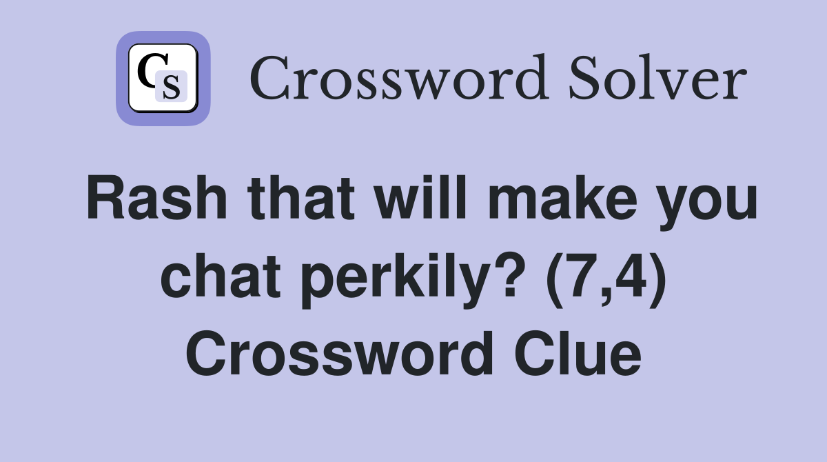 Rash that will make you chat perkily? (7 4) Crossword Clue Answers