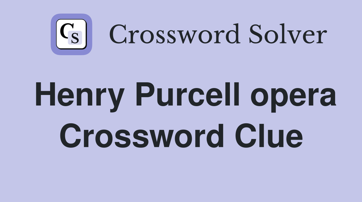 Henry Purcell opera Crossword Clue Answers Crossword Solver