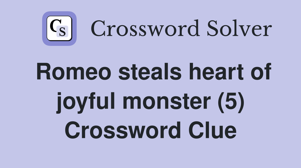 Romeo steals heart of joyful monster (5) Crossword Clue Answers