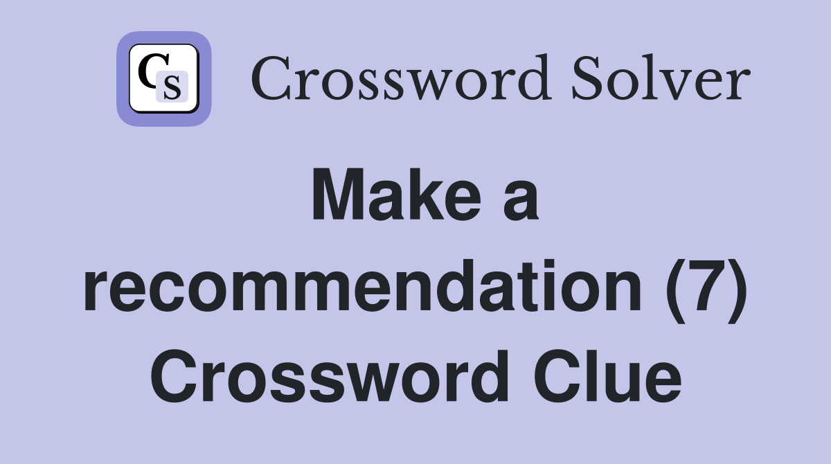 Make a recommendation (7) Crossword Clue Answers Crossword Solver