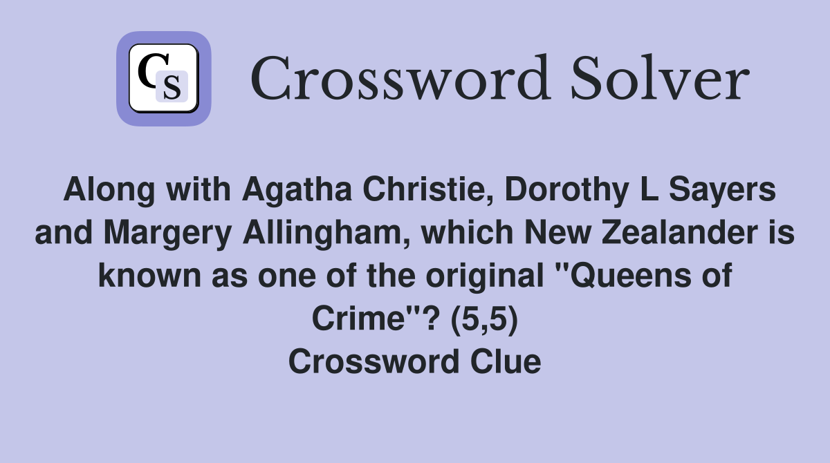 Along with Agatha Christie Dorothy L Sayers and Margery Allingham
