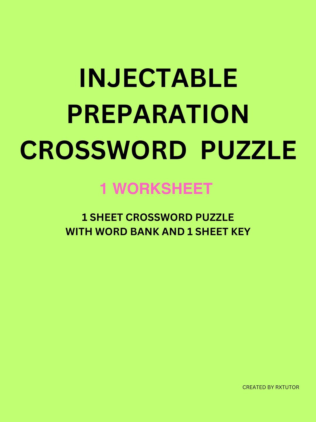 Injectable Preparations Crossword Puzzle Worksheet With Word Bank and