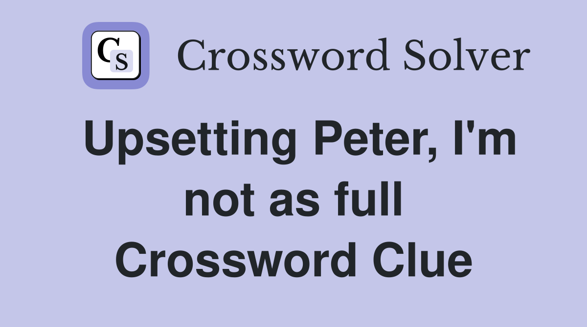 Upsetting Peter I #39 m not as full Crossword Clue Answers Crossword