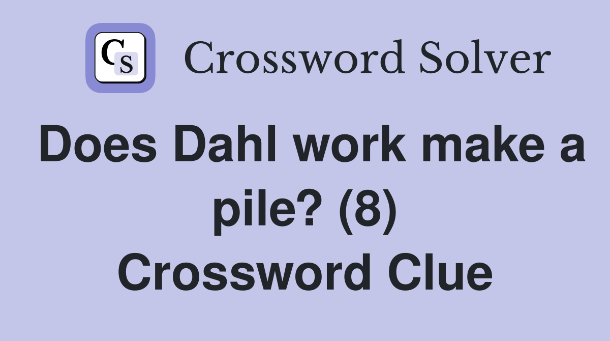 Does Dahl work make a pile? (8) Crossword Clue Answers Crossword Solver