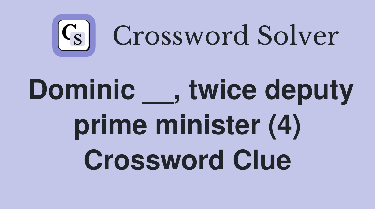 Dominic twice deputy prime minister (4) Crossword Clue Answers