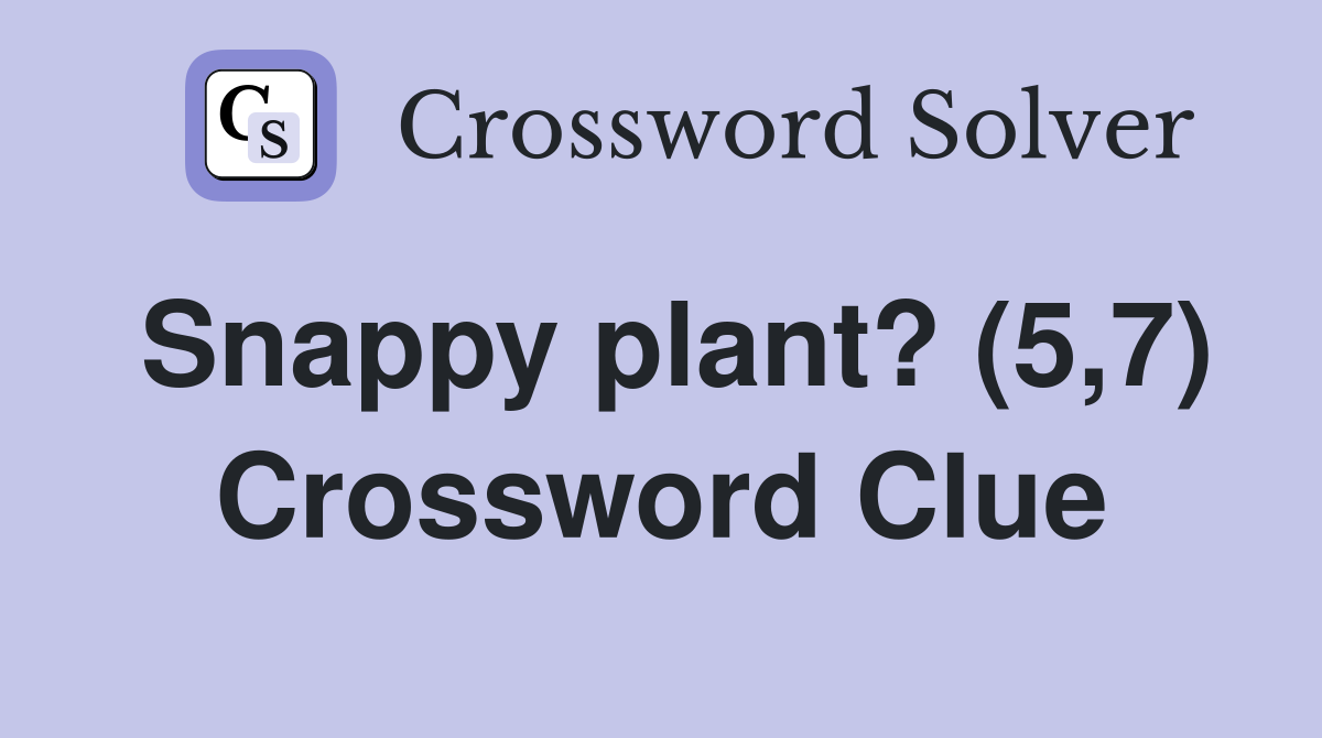 Snappy plant? (5 7) Crossword Clue Answers Crossword Solver