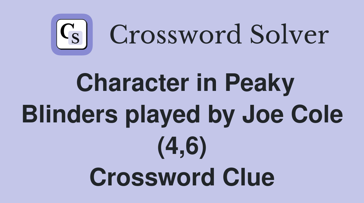 Character in Peaky Blinders played by Joe Cole (4 6) Crossword Clue