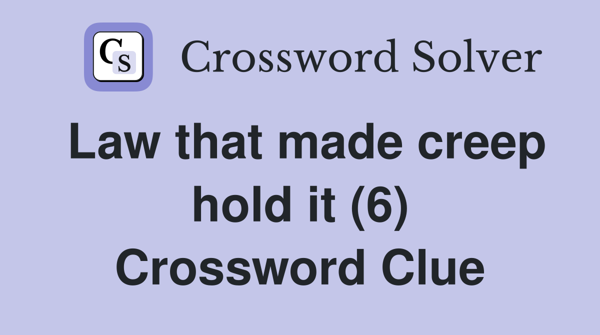 Law that made creep hold it (6) Crossword Clue Answers Crossword Solver
