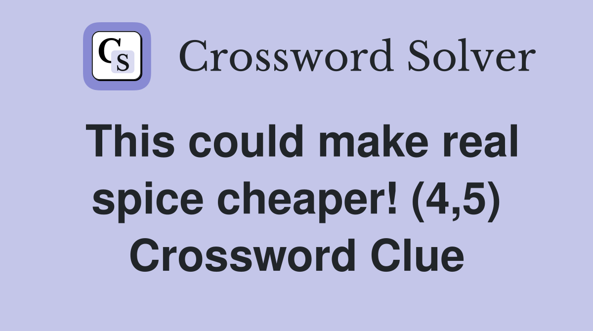 This could make real spice cheaper (4 5) Crossword Clue Answers