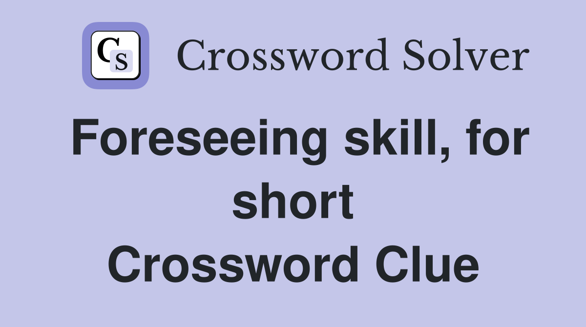 Foreseeing skill for short Crossword Clue Answers Crossword Solver