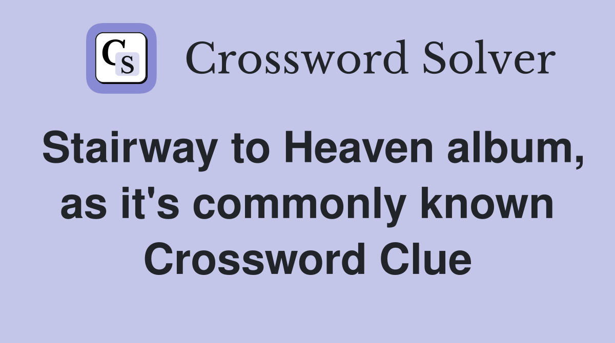 Stairway to Heaven album as it #39 s commonly known Crossword Clue