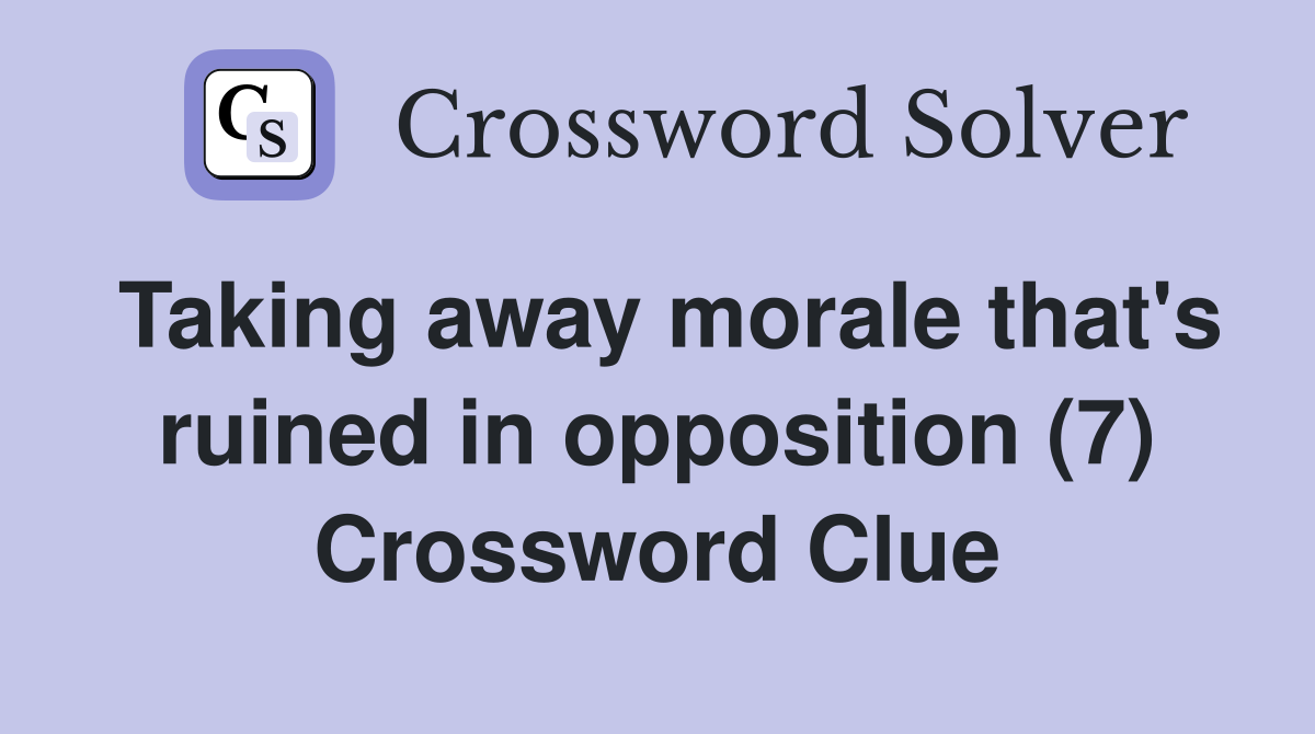 Taking away morale that #39 s ruined in opposition (7) Crossword Clue