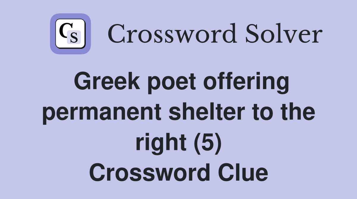 Greek poet offering permanent shelter to the right (5) Crossword Clue
