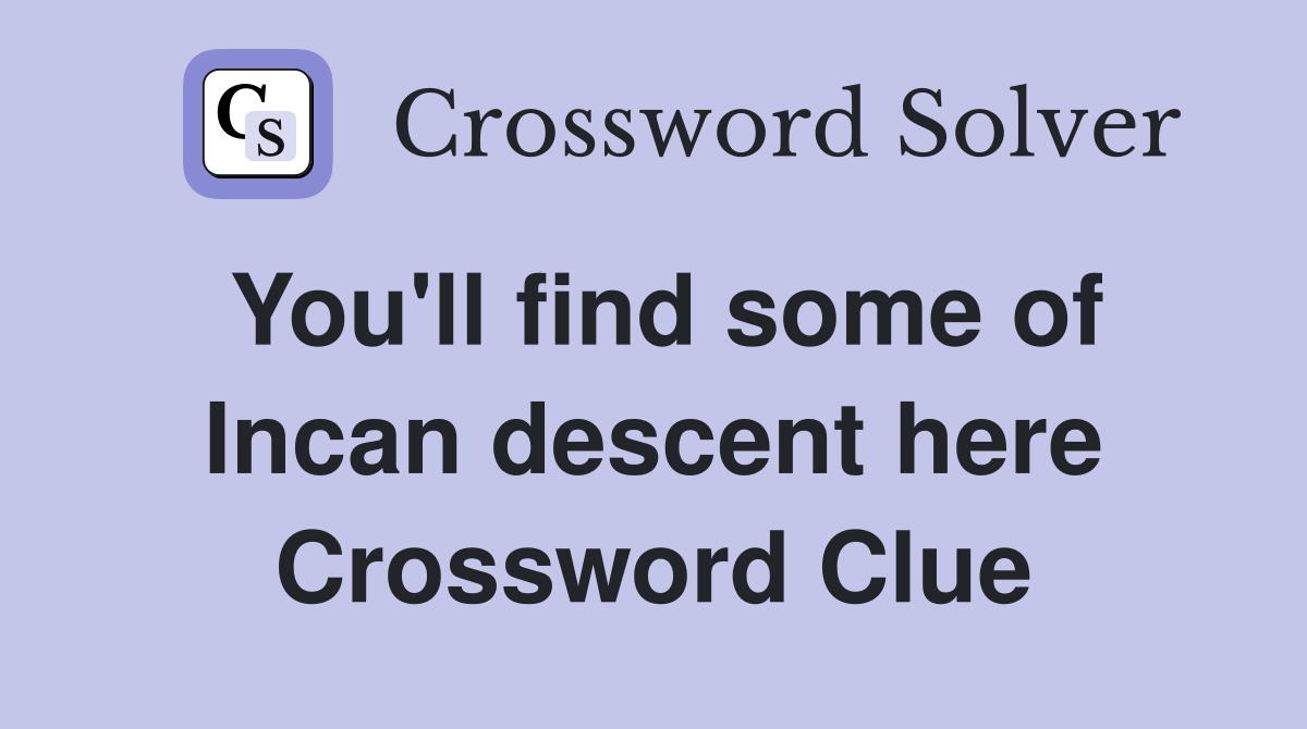 You #39 ll find some of Incan descent here Crossword Clue Answers